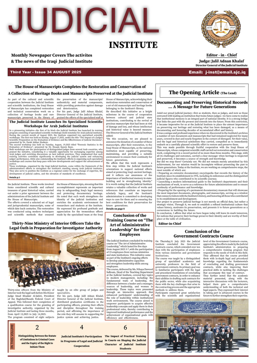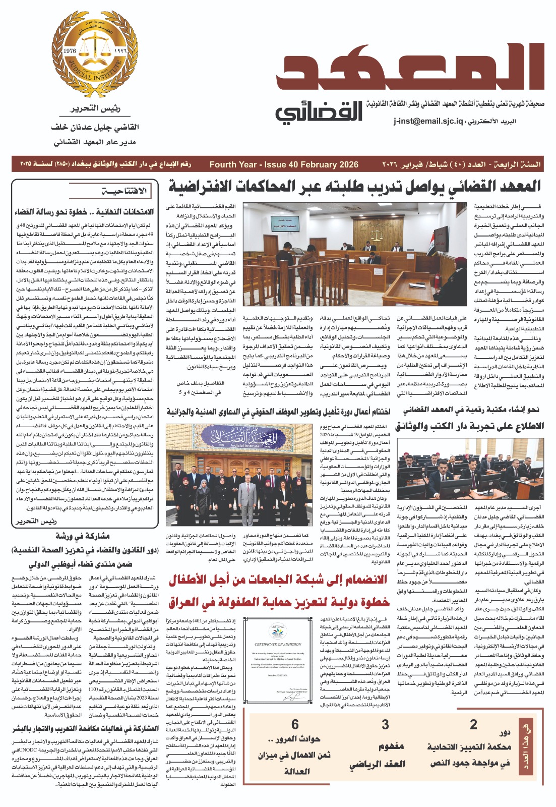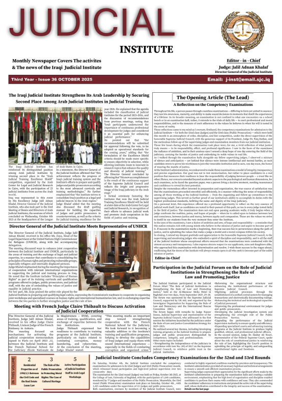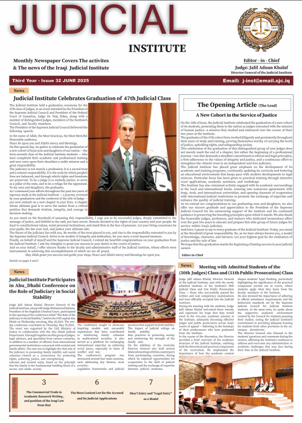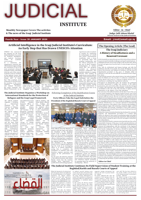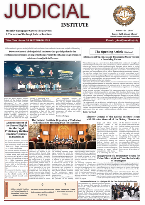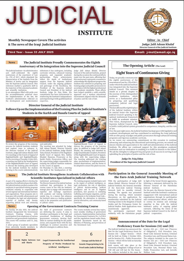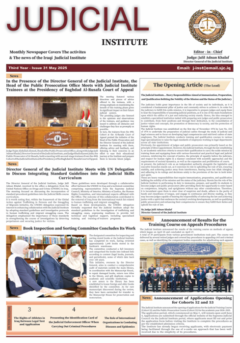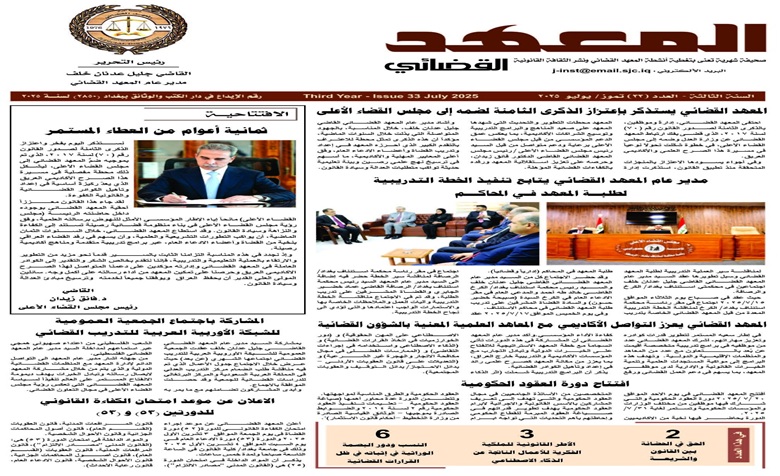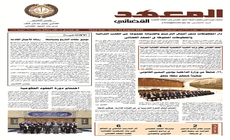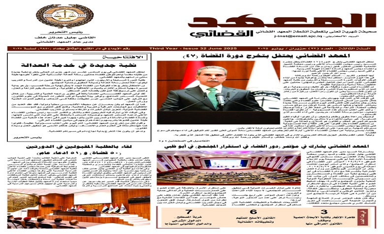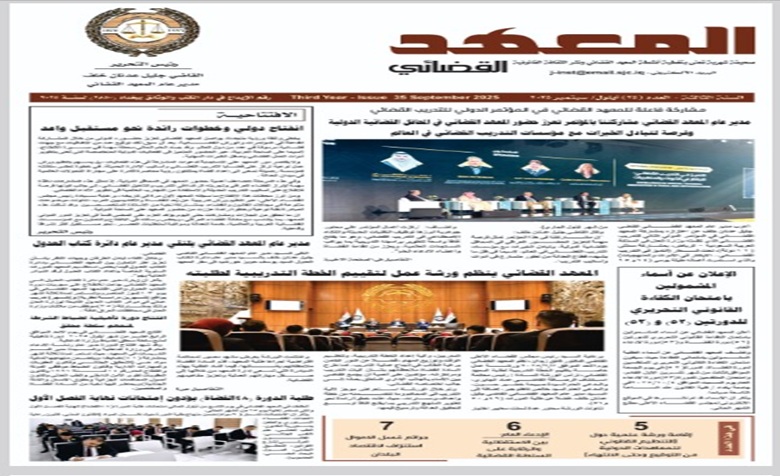 صحيفة شهرية تُعنى بتغطية أخبار وأنشطة المعهد القضائي والمقالات القانونية للسادة القضاة والموظفين وطلبة المعهد القضائي باللغتين العربية والانكليزية.